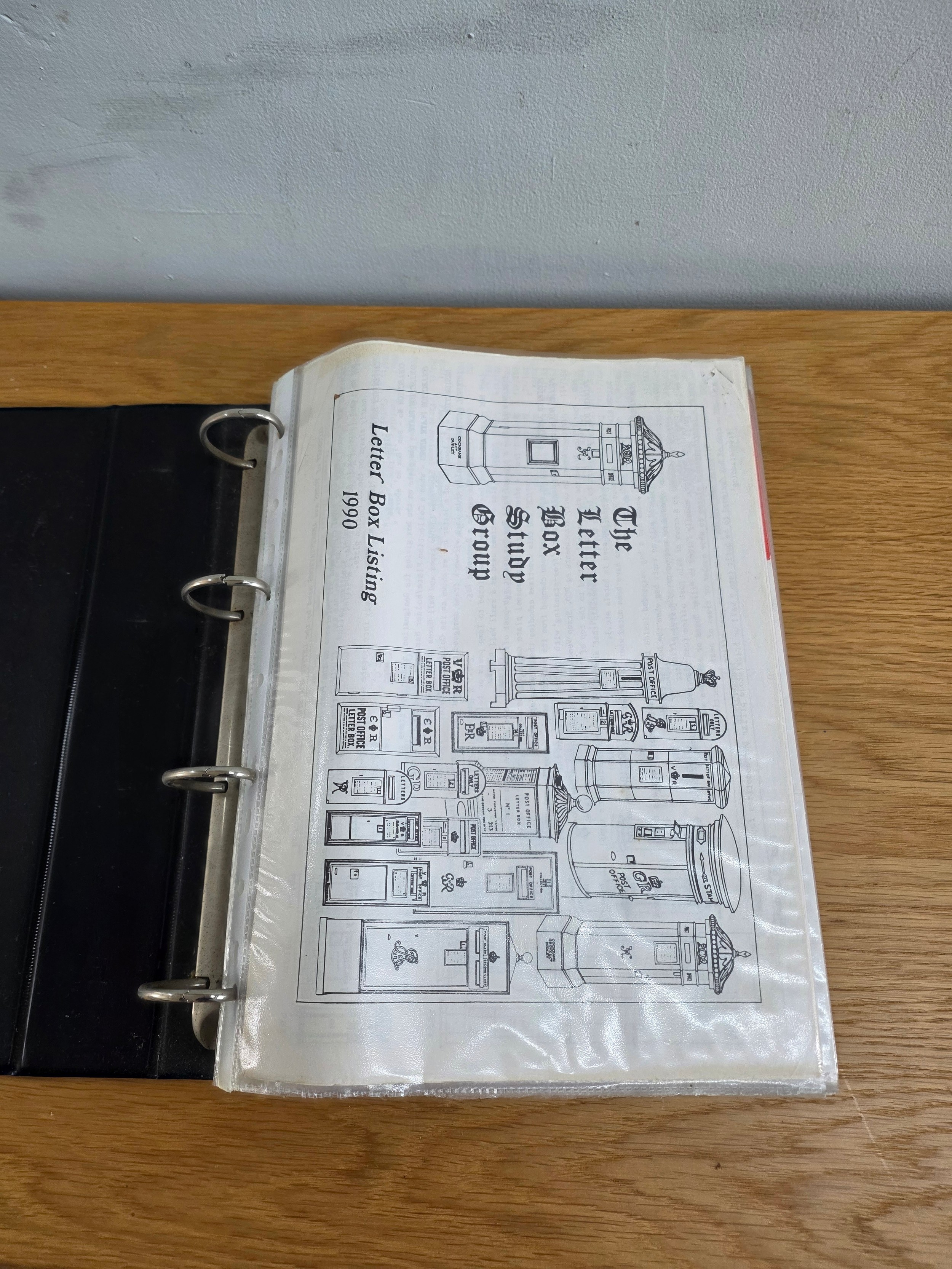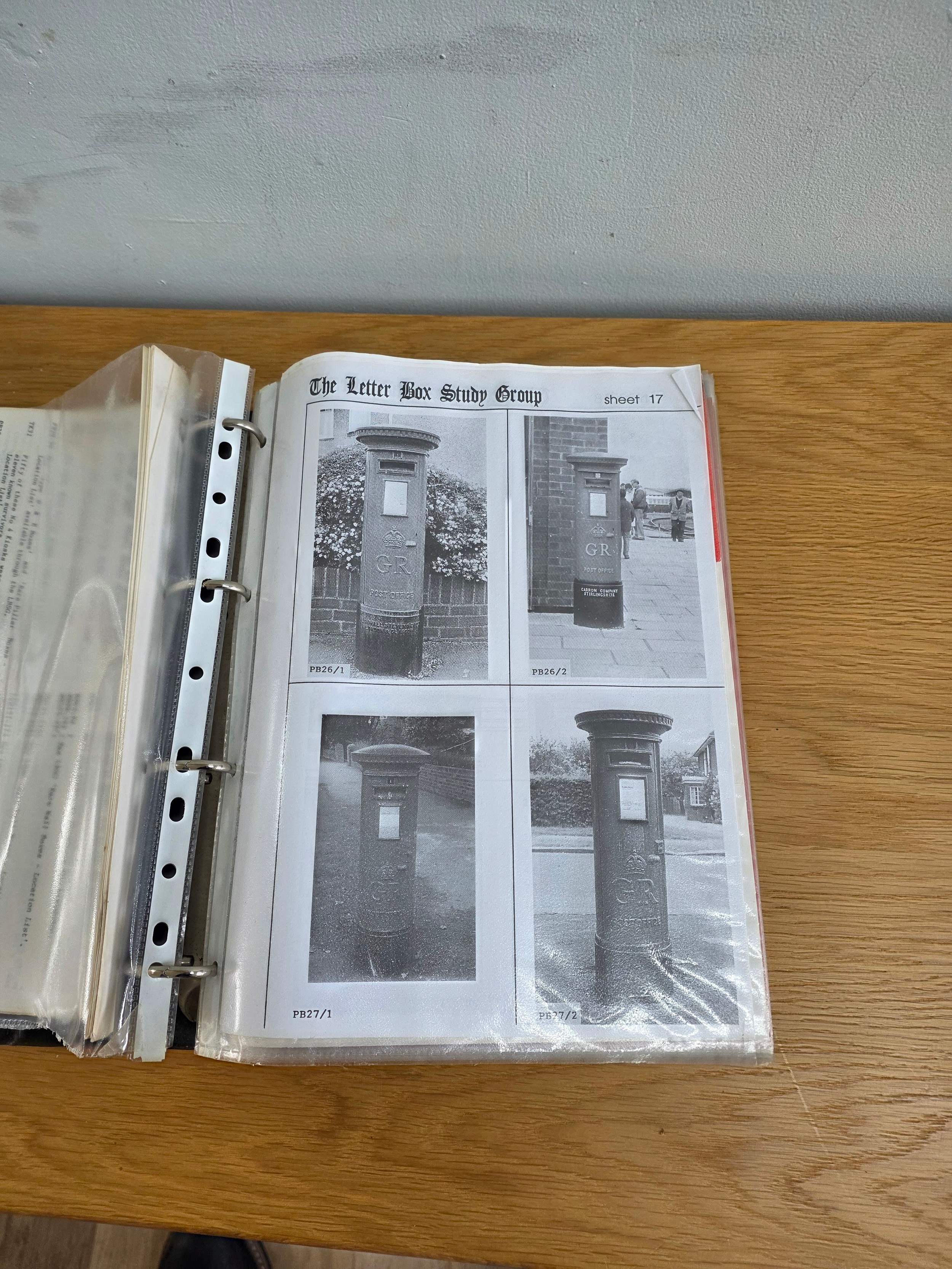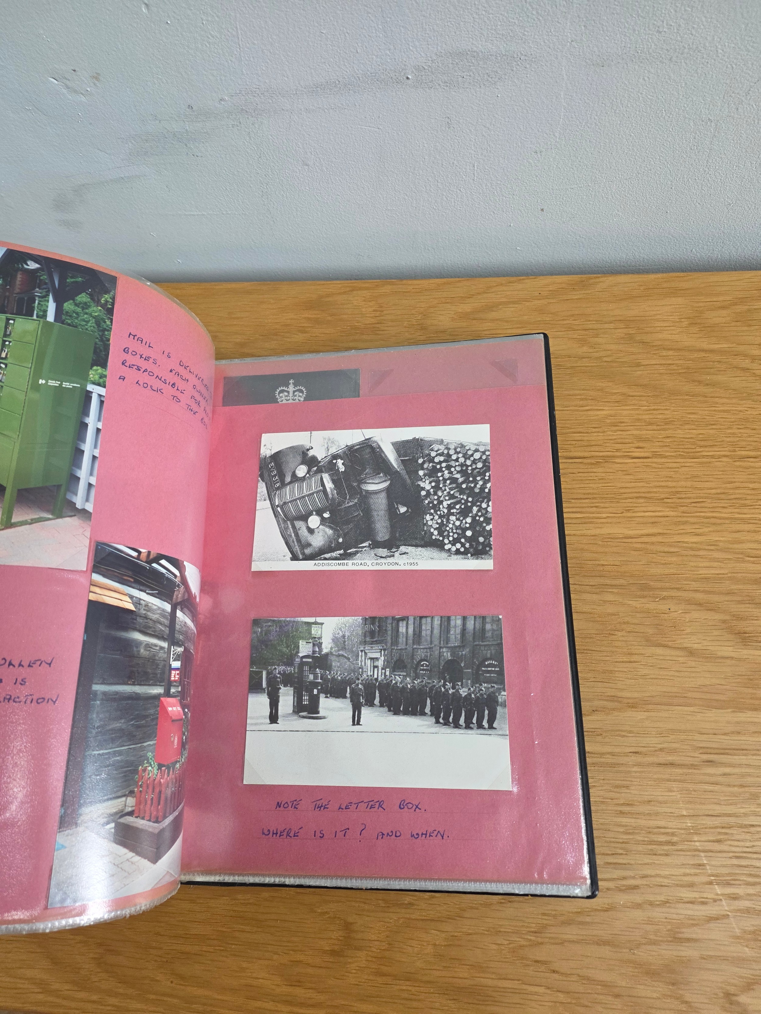 An album of newsletters from the letter box study group, pictures, postcards and information related to the history of UK Postboxes