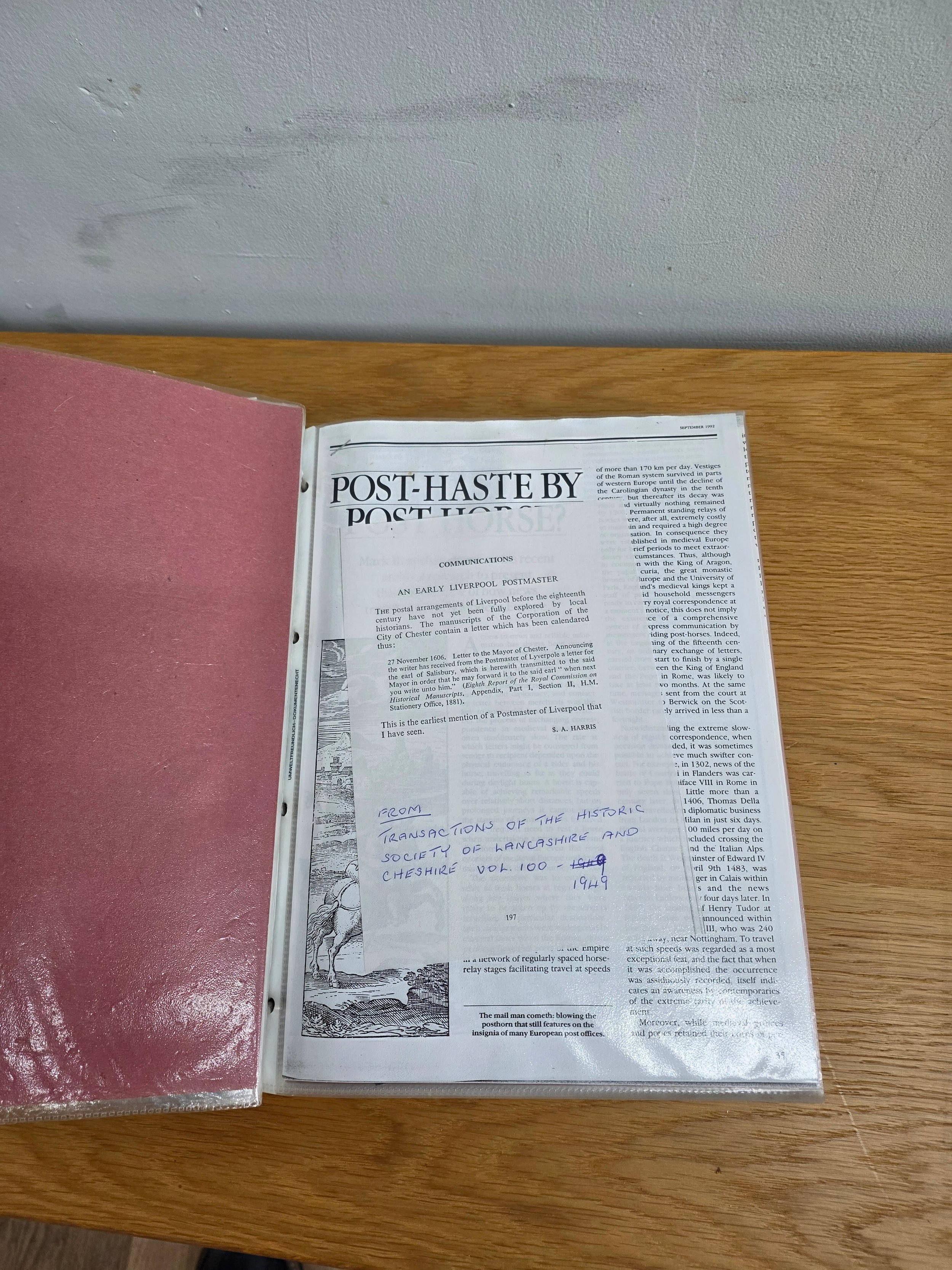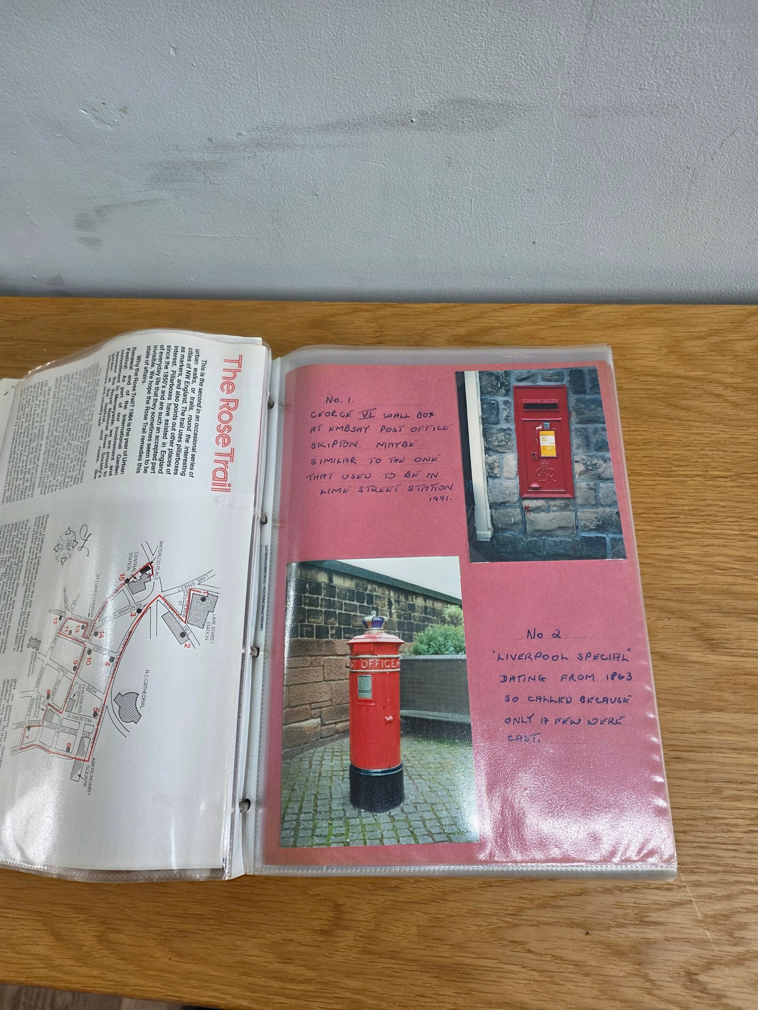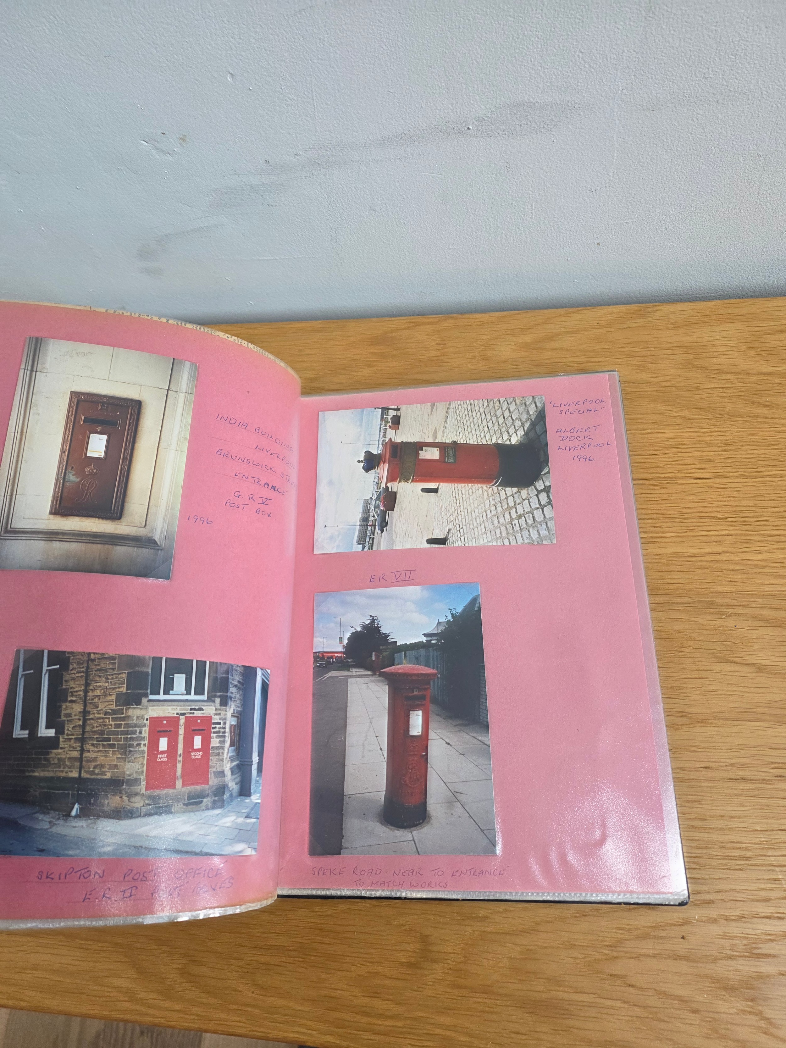 An album of newsletters from the letter box study group, pictures, postcards and information related to the history of UK Postboxes