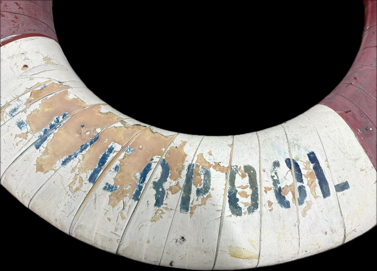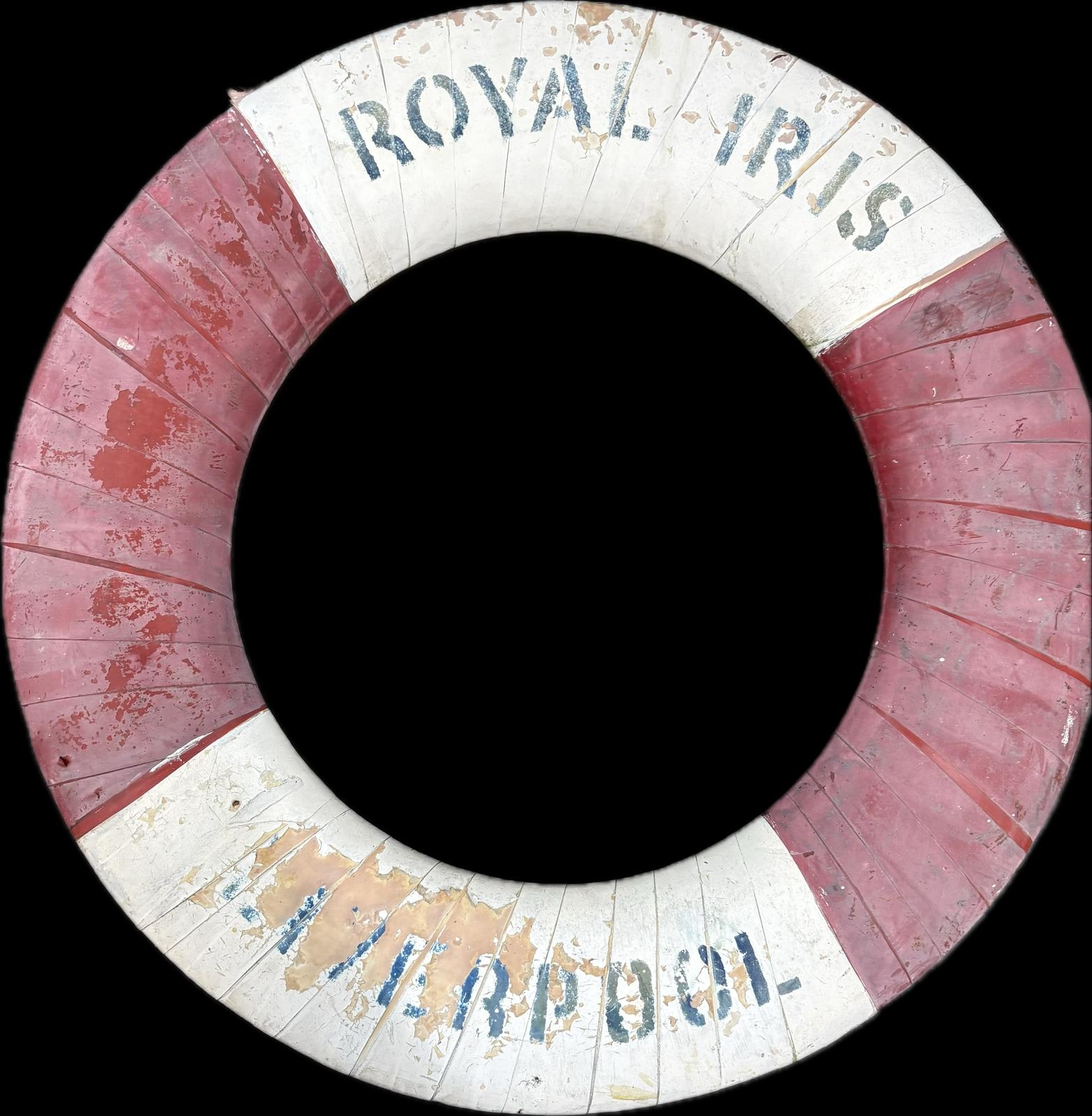 Royal Iris. A Life Buoy Ring reputably from the famous Liverpool ferry Royal Iris. Red and white wrappings and annotated 'Royal Iris, Liverpool.'