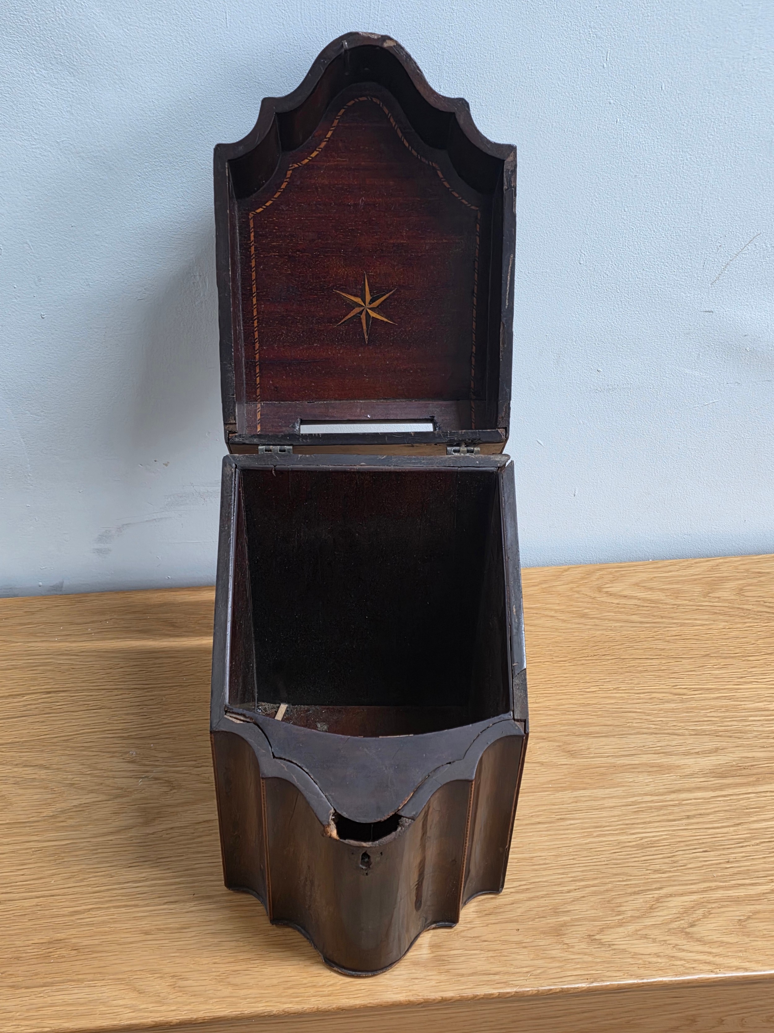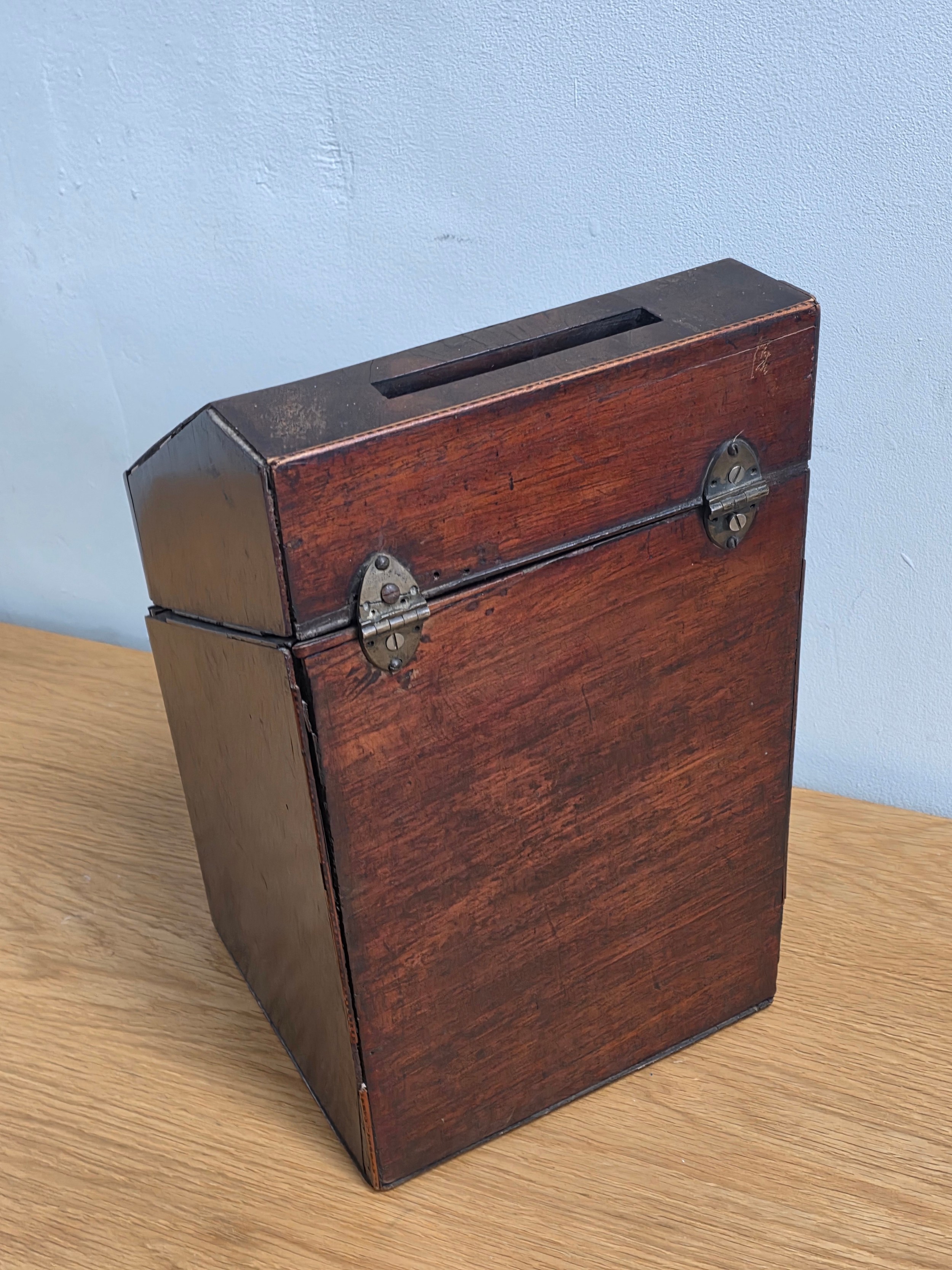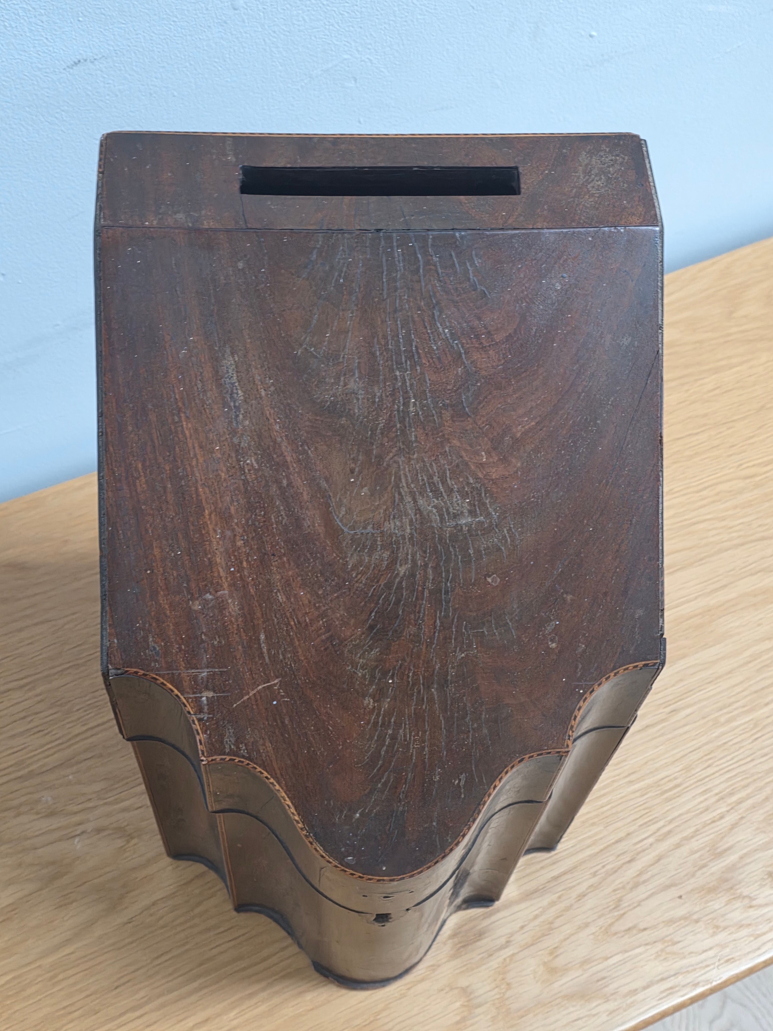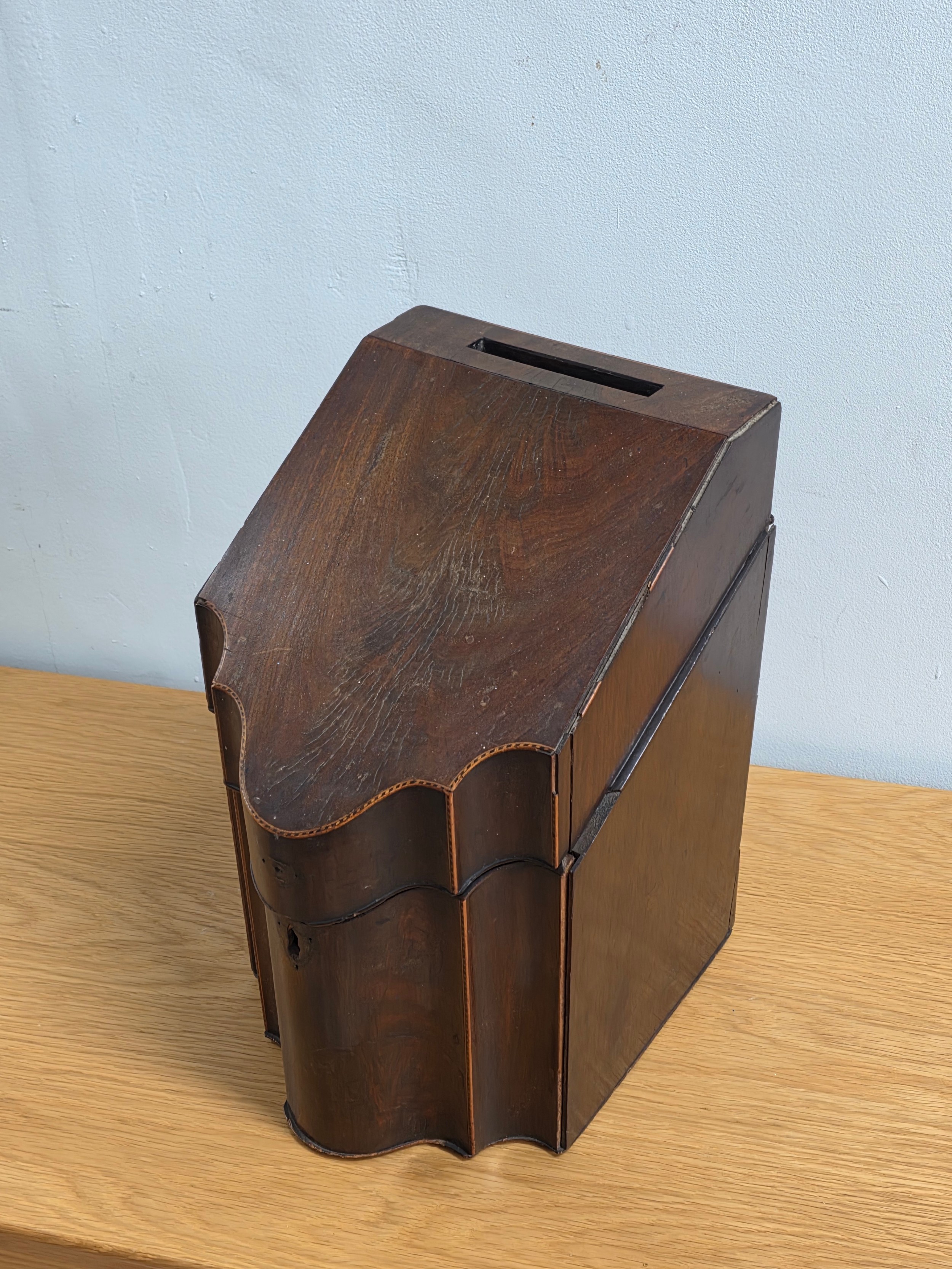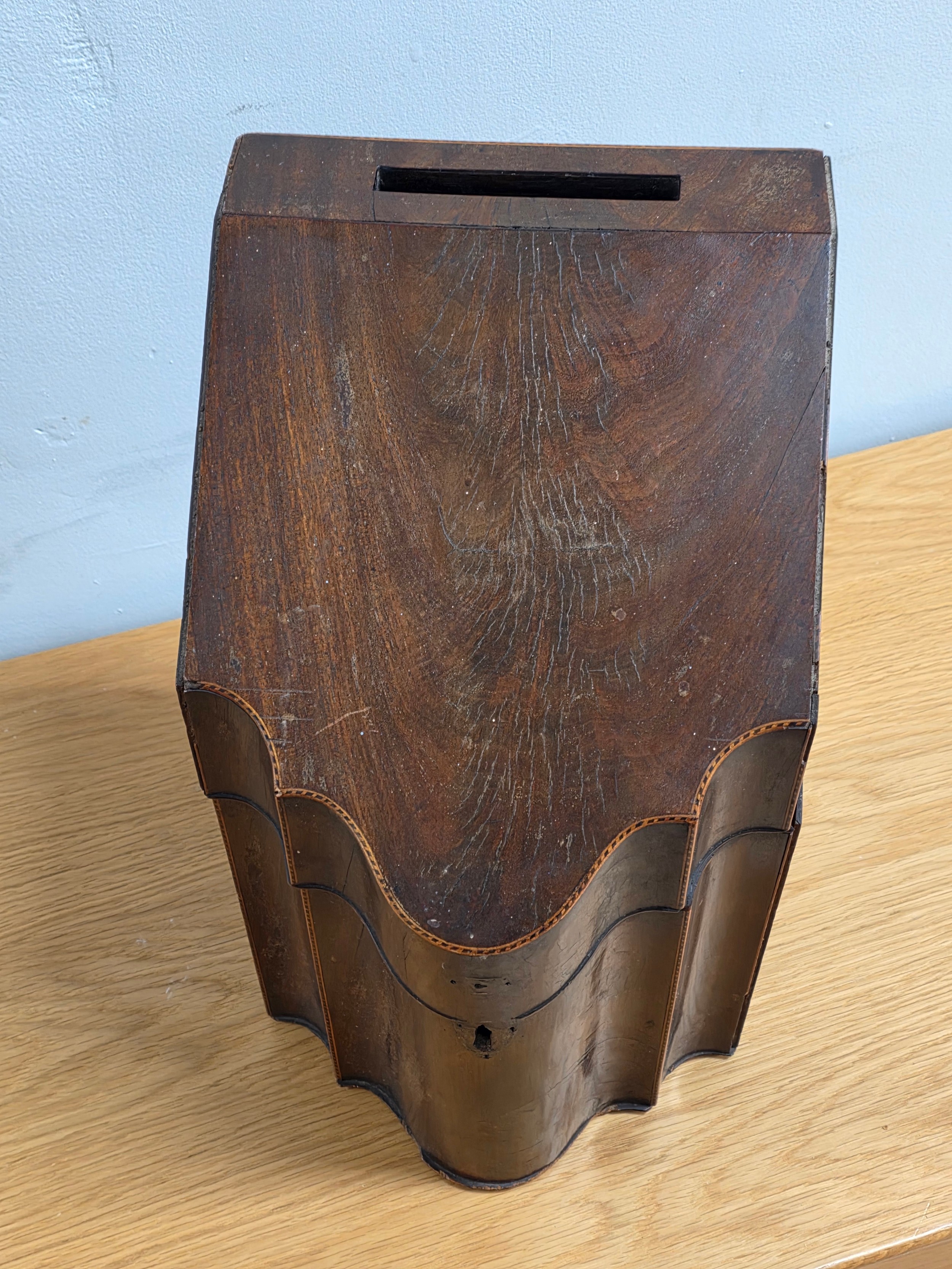 Georgian Inlaid Mahogany Serpentine Knife Cutlery Box, converted to a document box 36cm (H) 22cm (W) 27cm (D)