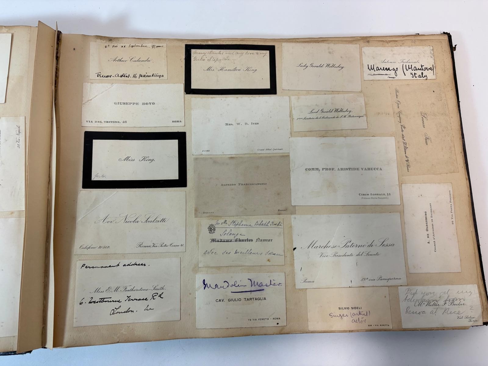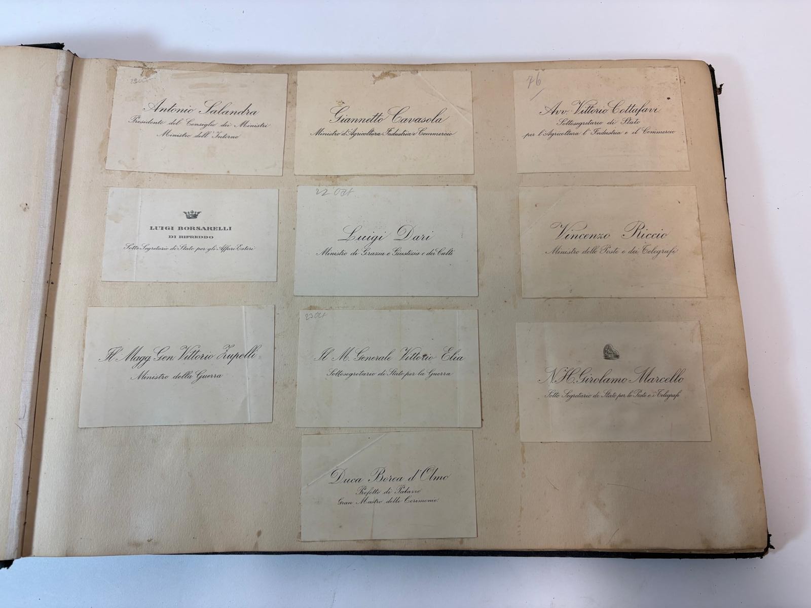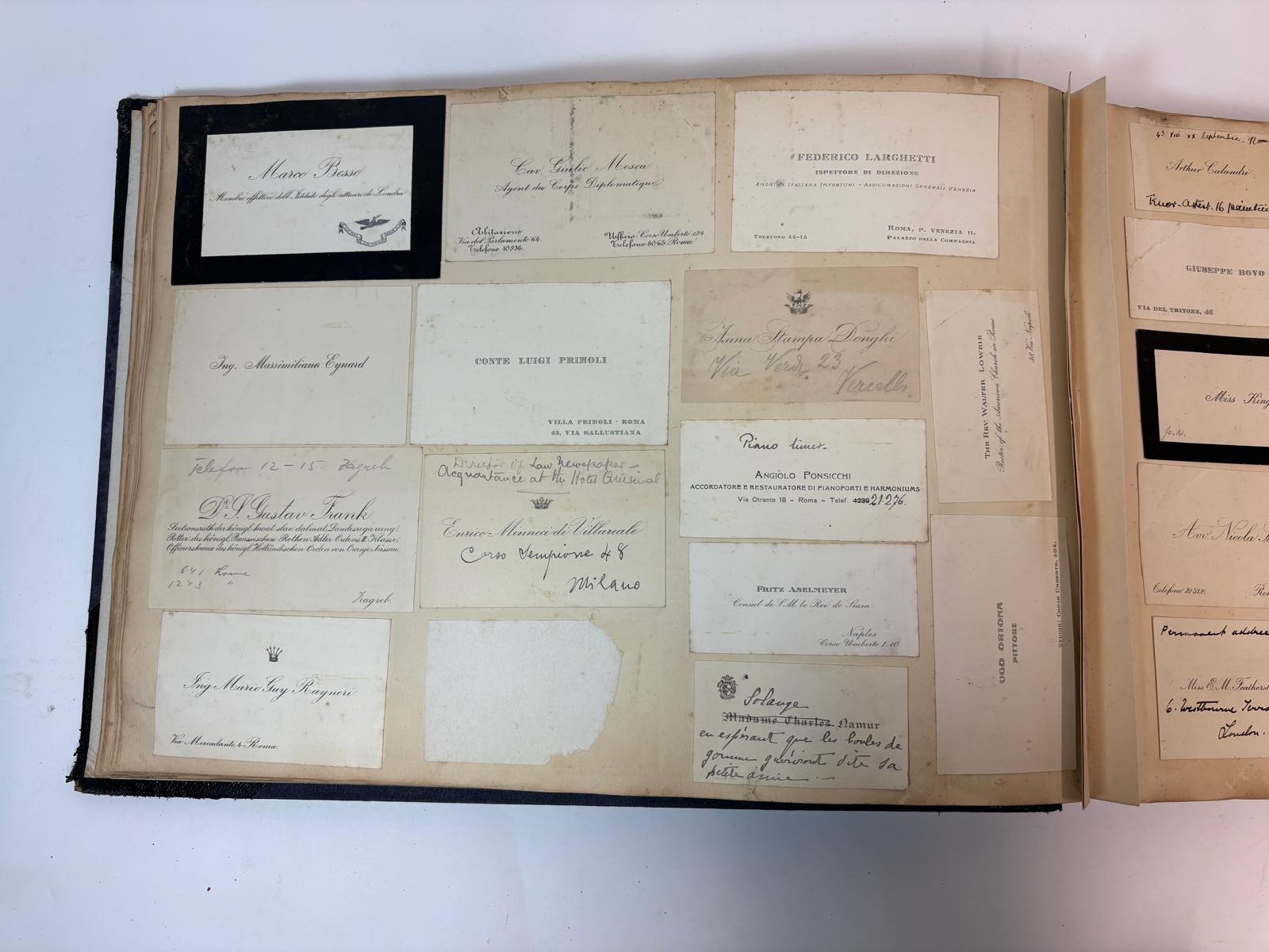 A collection of circa 300 calling cards of famous and prominent people of the era including Mussolini contained within an album.