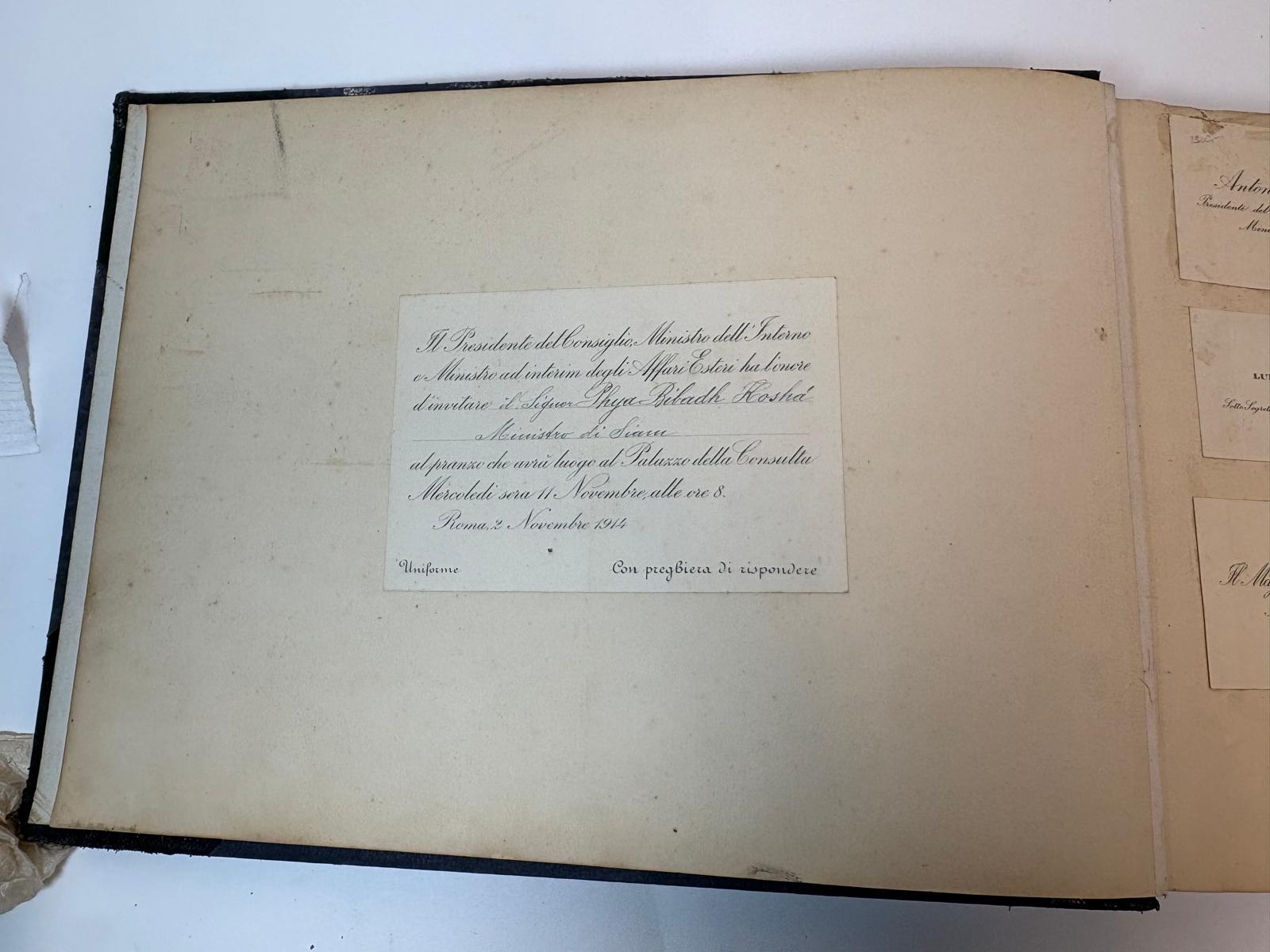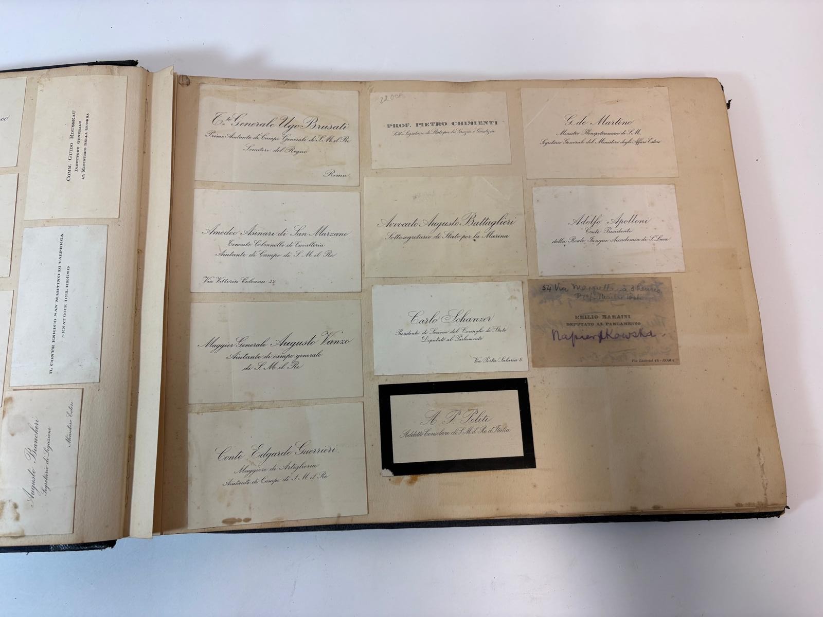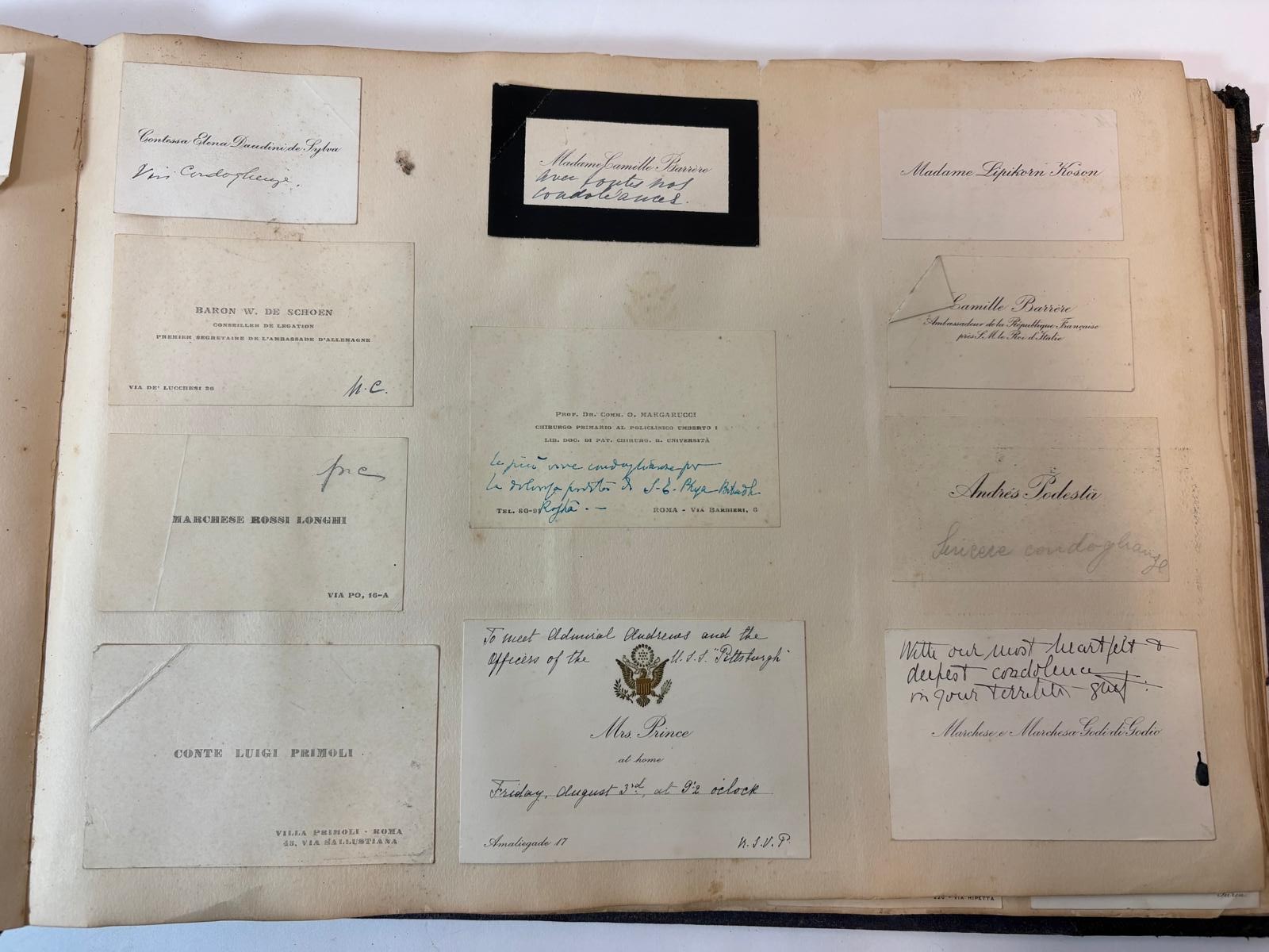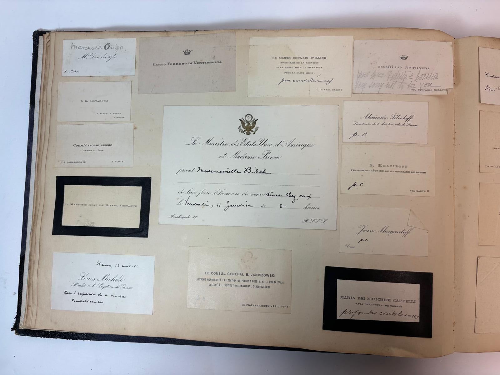 A collection of circa 300 calling cards of famous and prominent people of the era including Mussolini contained within an album.