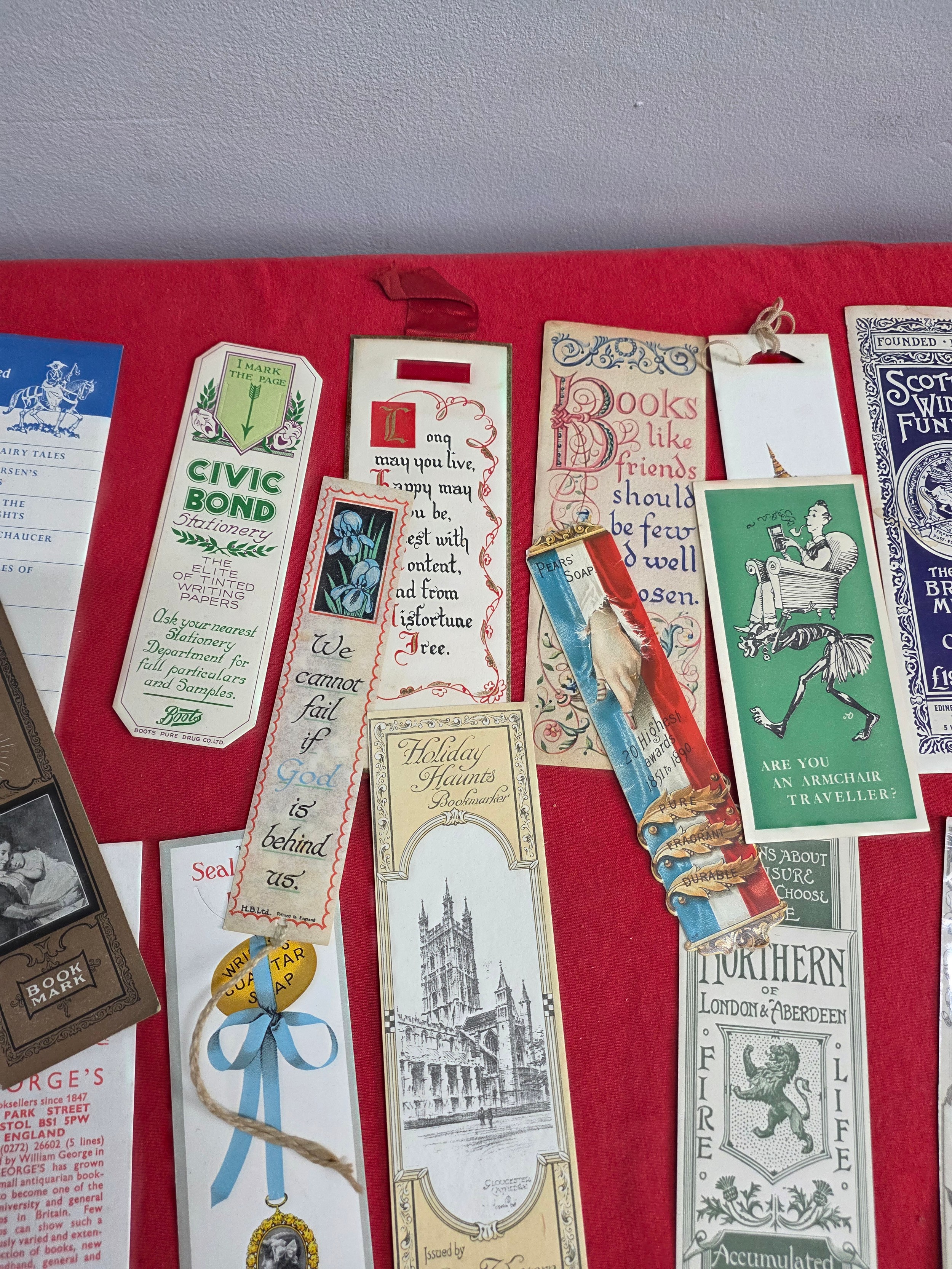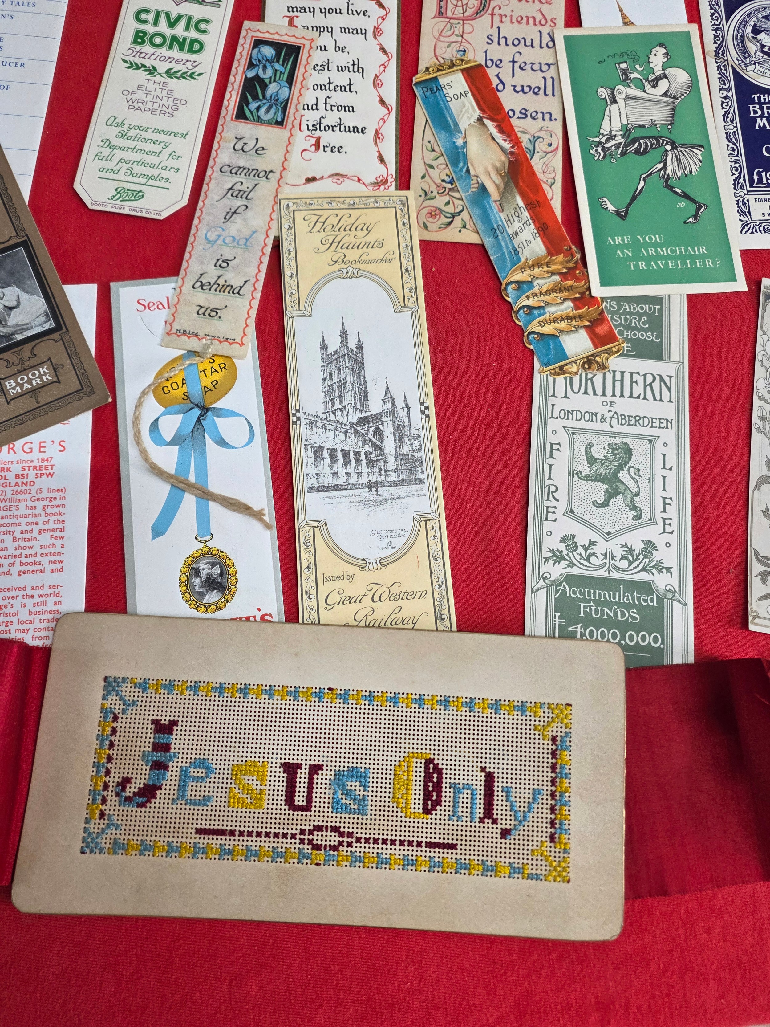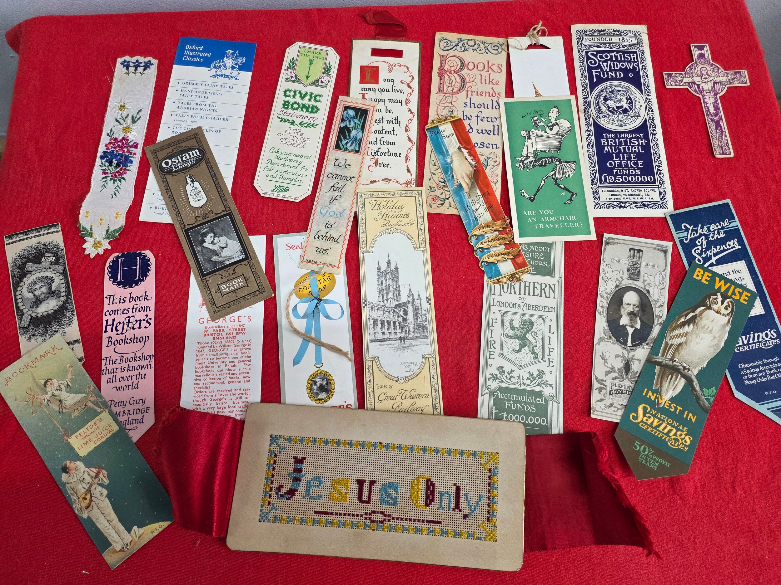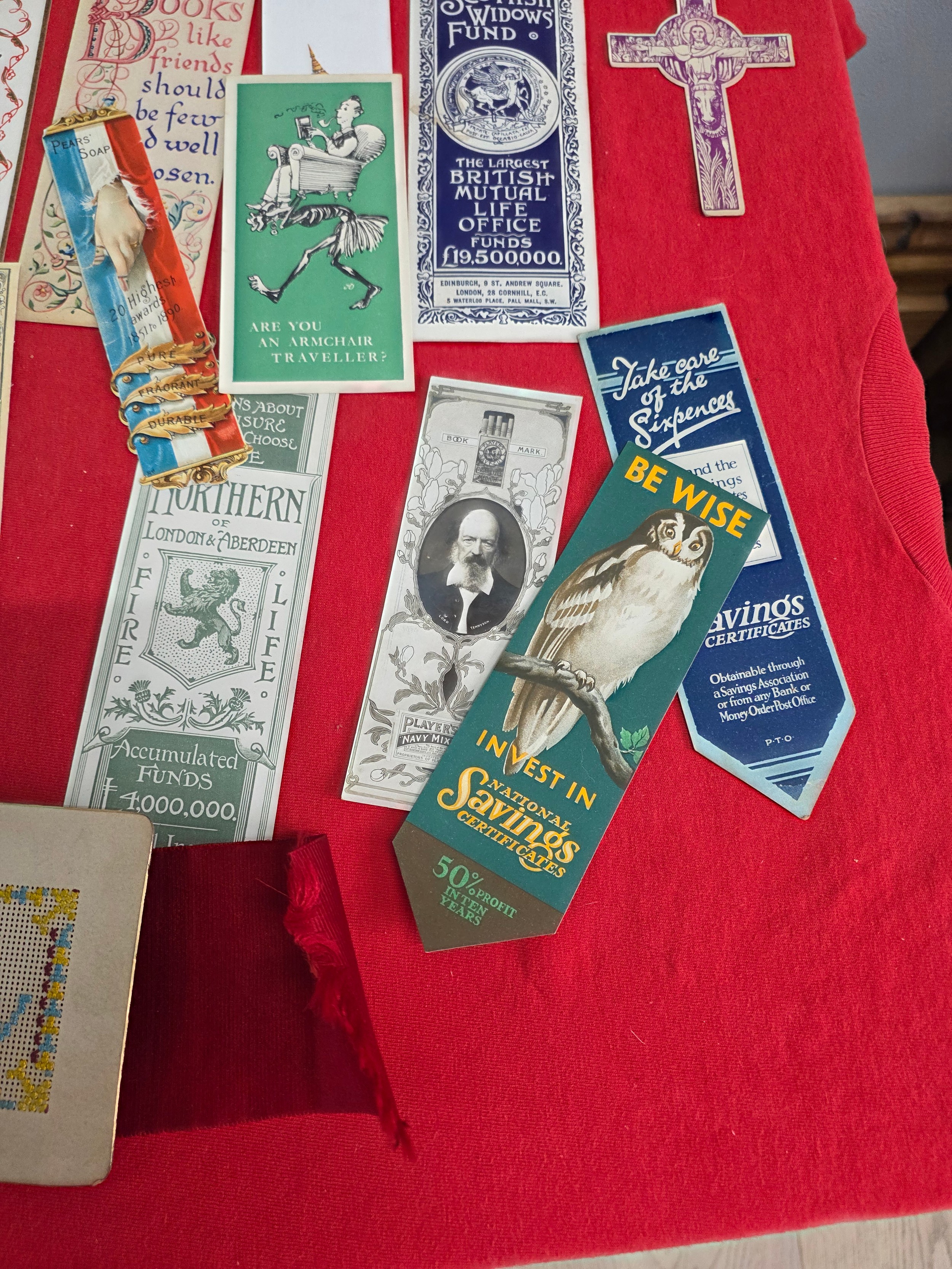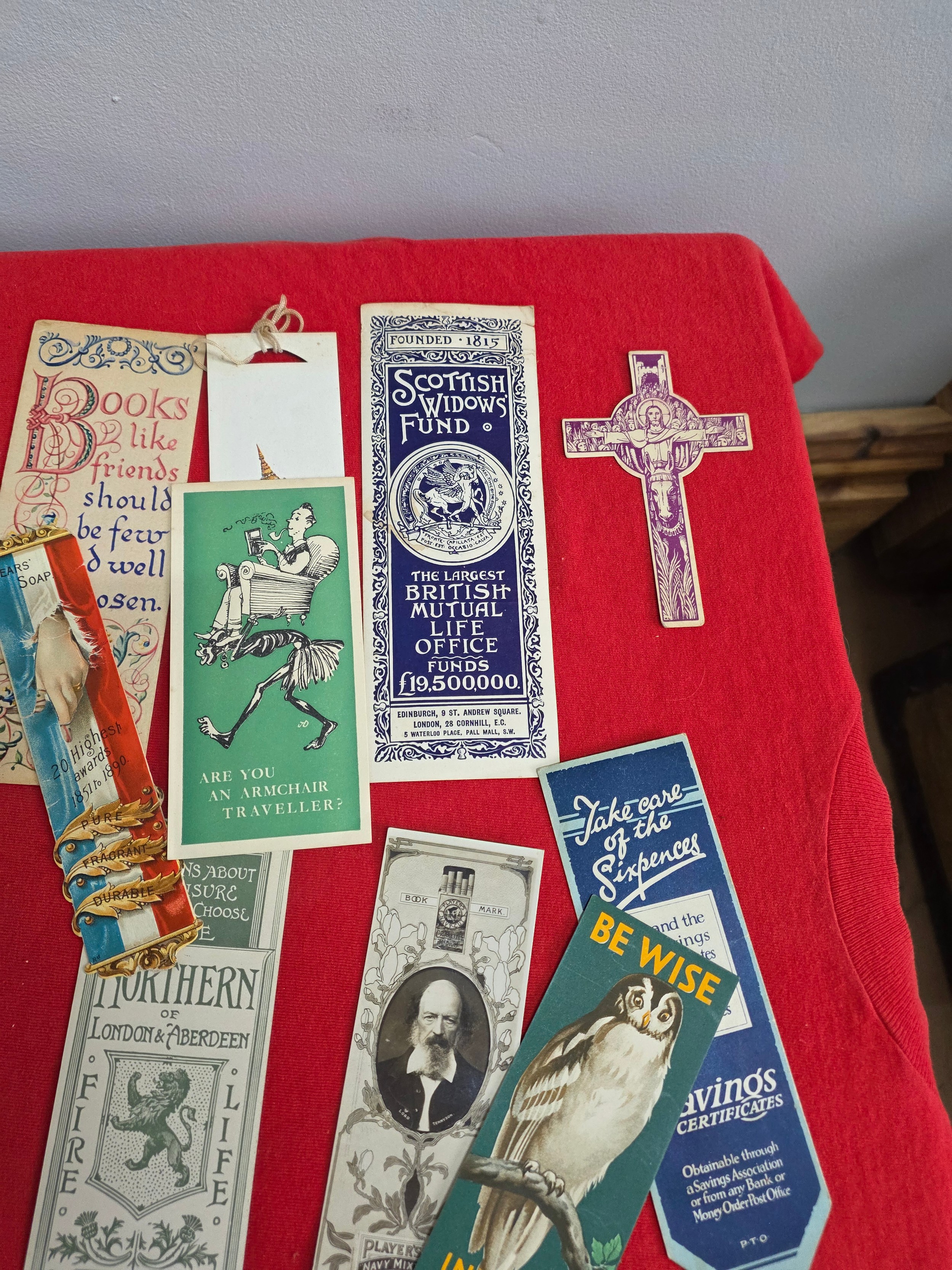 Early 20th Century advertising bookmarks. A wonderful collection of 22 bookmarks advertising pensions, stationary, religion, books, pears soap, Osram lamps and lots more